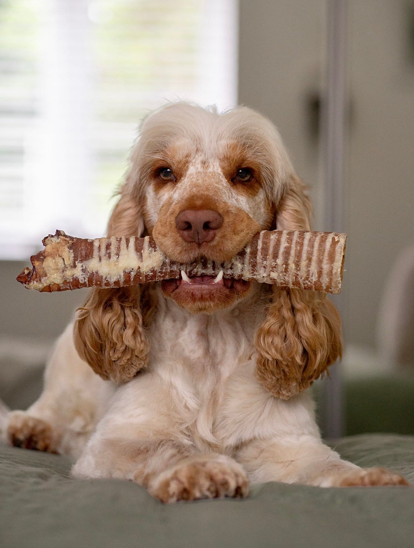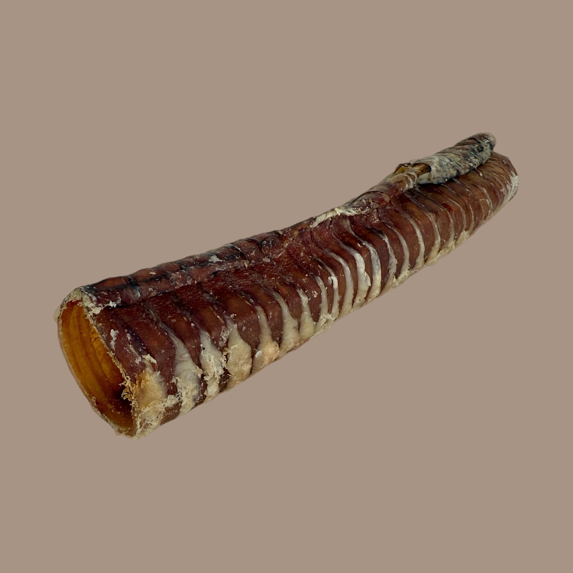 Our Beef Trachea are hollow chews made from the windpipe of a cow. Their shape allows them to be filled with a variety of foods, making them even longer lasting! The cartilage that lines the outside of the trachea is naturally rich in chondroitin and collagen.