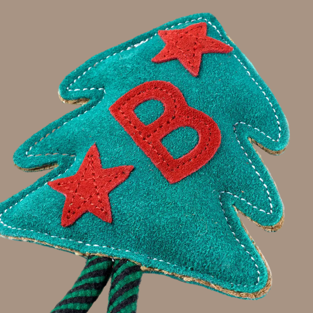 Made from sustainable jute which is a natural plant fibre and covered in a soft suede. It is robust and produced without using any added compound that would harm or be released when chewed. Jute is 100% biodegradable. The suede is a by-product and ensures this material is not wasted.