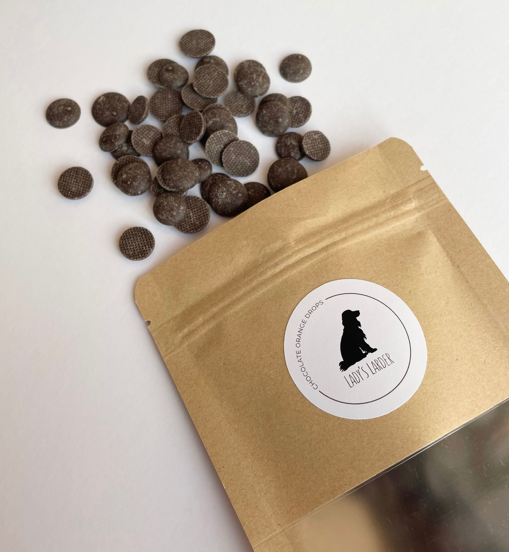 Our Chocolate Orange Drops are made from 100% natural carob and organic orange, they are completely dog safe and enriched with vitamins and minerals. A delicious melt in the mouth treat for your dog!