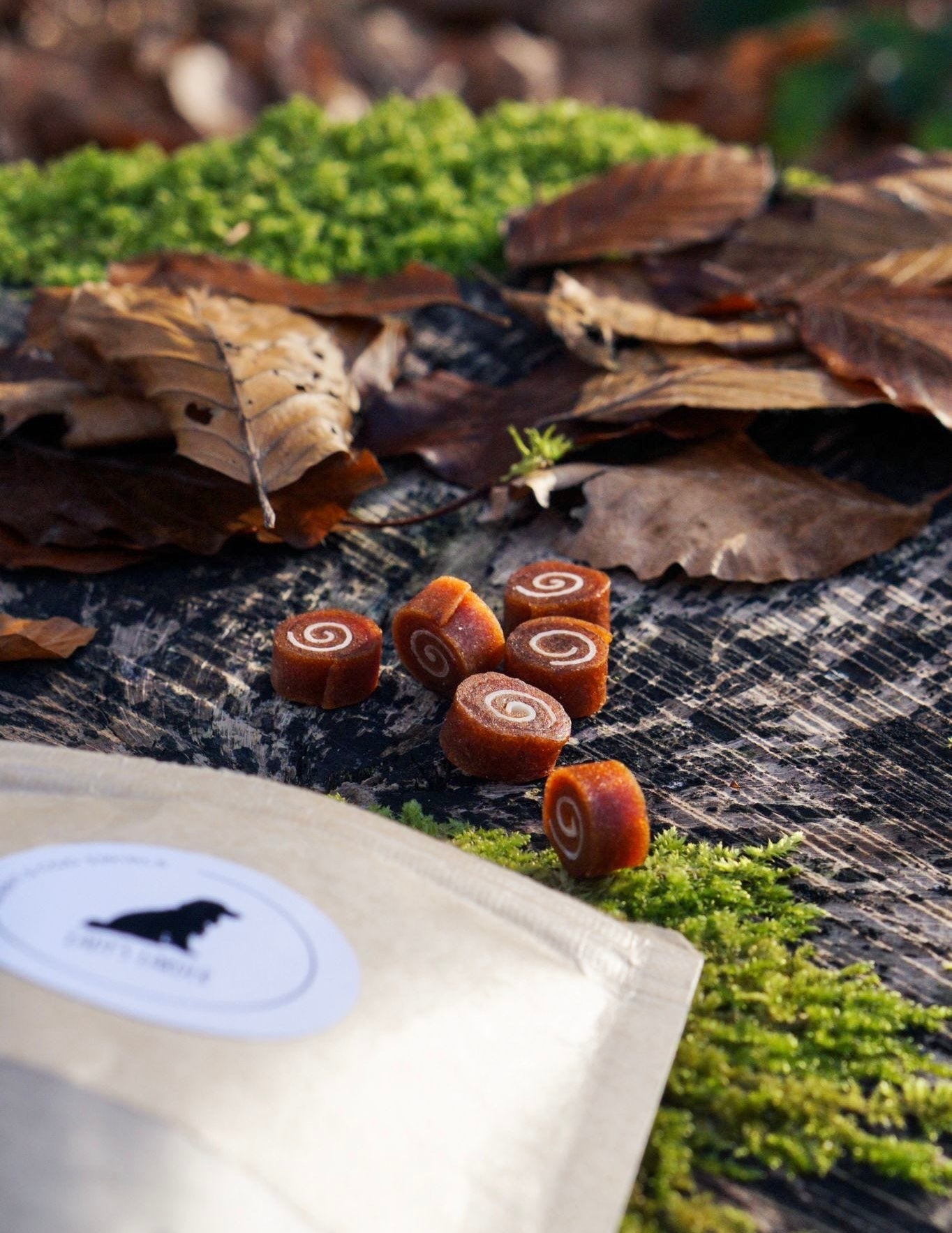 Our Duck & Cod Swirls have been specially formulated for training and rewarding your dog. These treats blend duck's rich flavour with cod’s nutritious benefits, rolled into convenient mini sizes. Perfect for all dog sizes, they provide a high-protein, delicious snack that supports your training efforts with a taste dogs love!