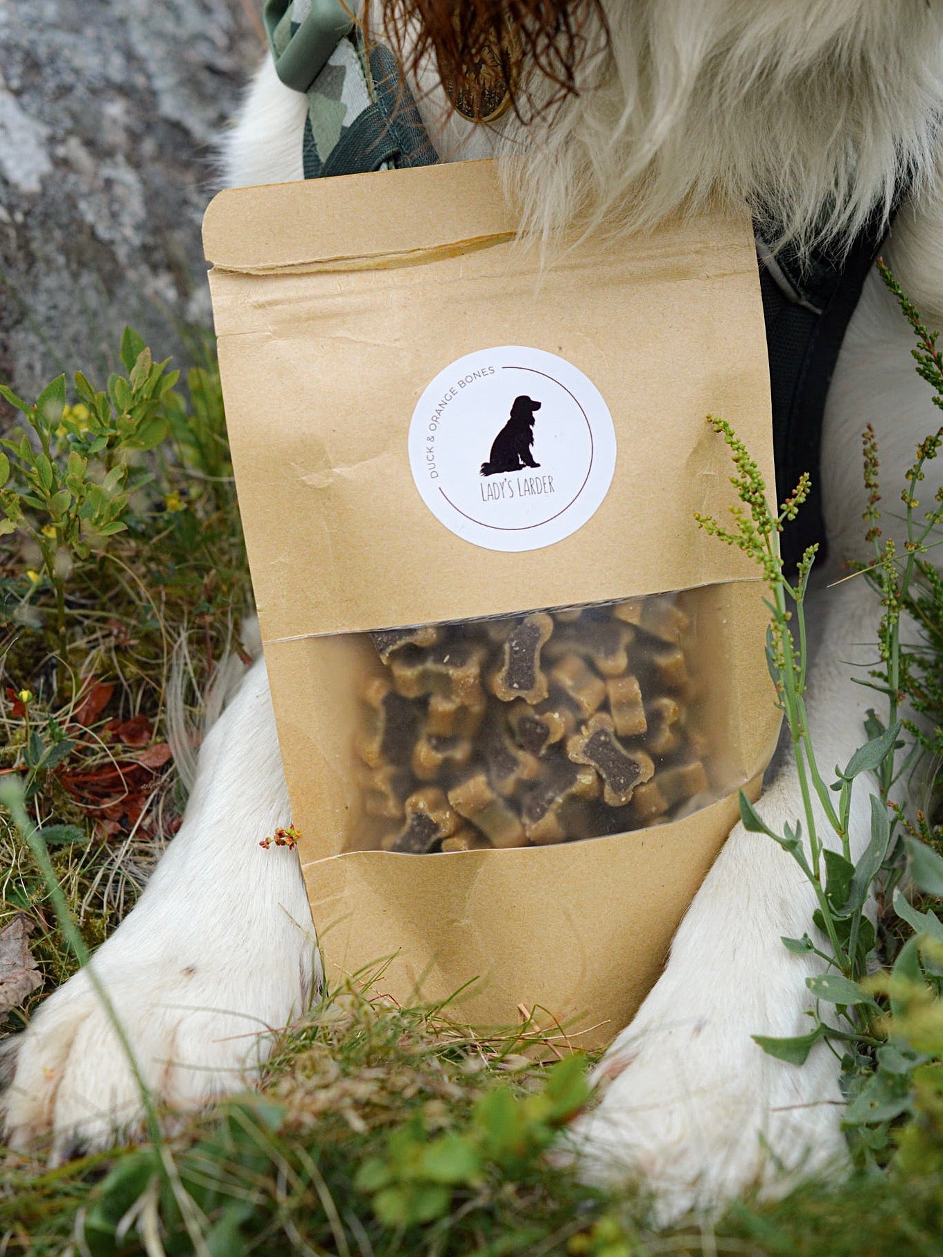 Our Duck & Orange Bones make delicious training treats! They are super soft making them suitable for all breeds, even dogs with sensitive teeth.