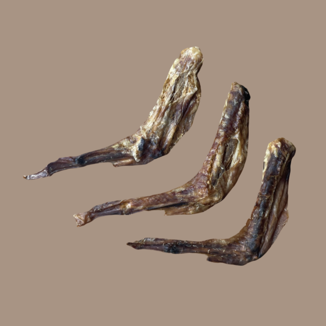 Our Duck Wings contain no chemicals or preservatives, just DUCK! Let your pup crunch away and absorb the rich flavour while ingesting a dense source of calcium, potassium, glucosamine and chondroitin. They make a great treat for dogs of all sizes and ages - offering a crunchy, teeth cleaning snack.